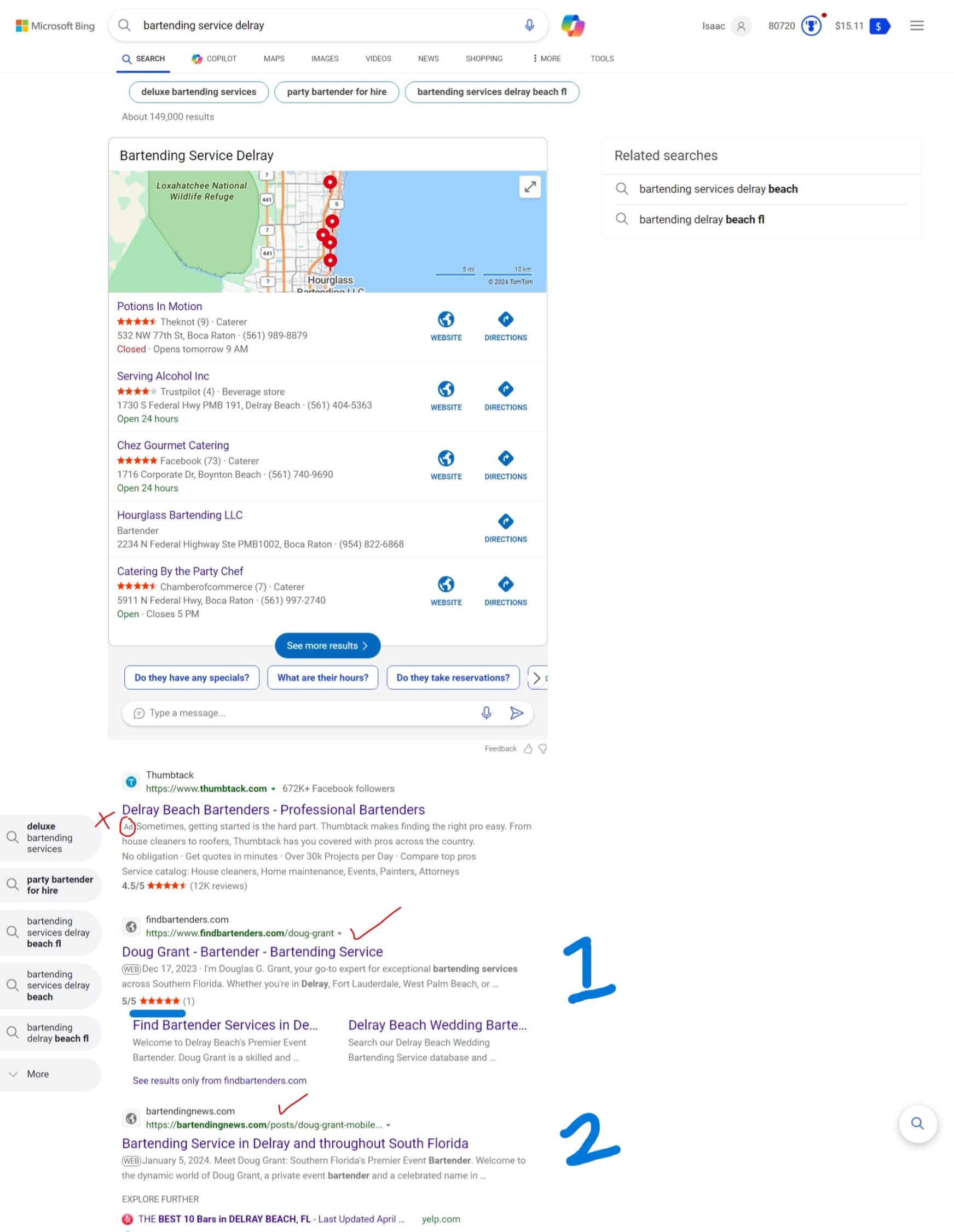 - Top Rankings for SEO: Articles and profiles placed within the top 10 search results for keywords like “Event Bartenders” in their specific locations.
